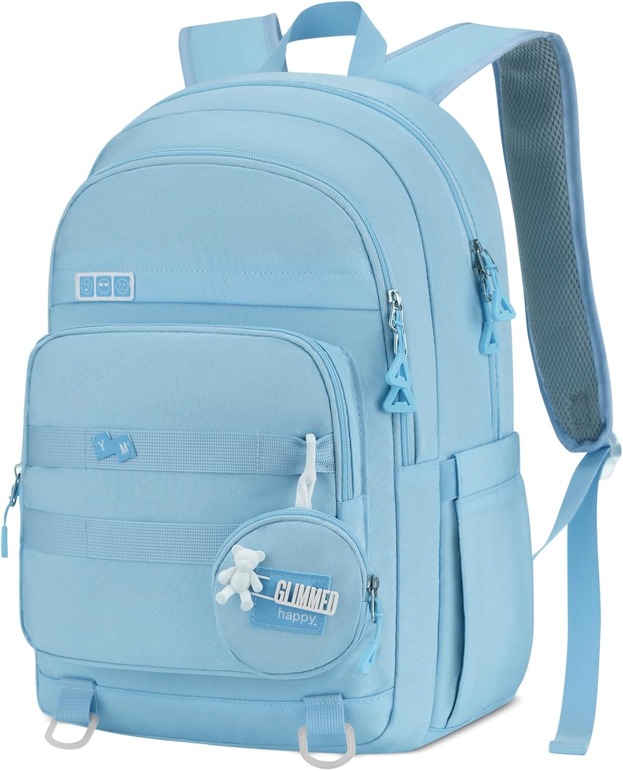 YAMTION Cute School Backpack for Teen Girls,Laptop Backpack Fits 15.6Inch Notebook,Casual Bookbag for Teens High School College Work Travel,Blue