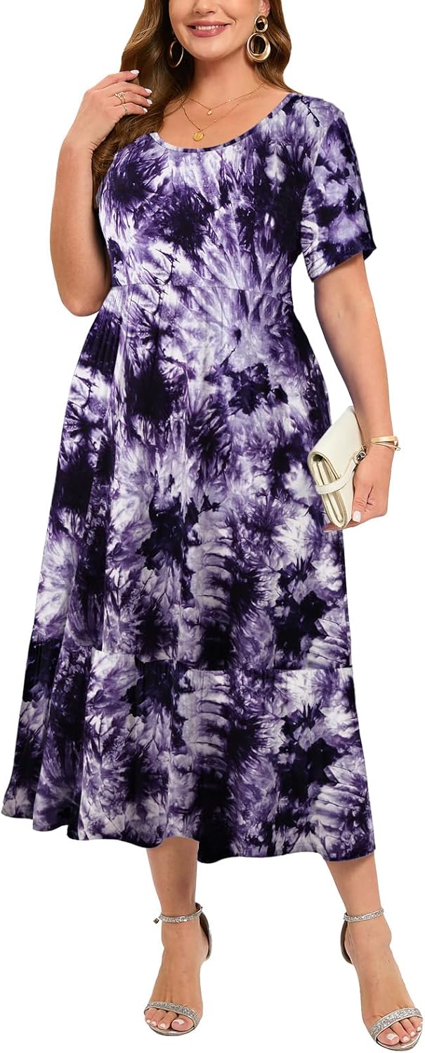 LARACE Plus Size Dresses for Women Summer Casual Short Sleeve Long Dress Flowy Maxi Beach Dresses with Pockets L-6XL