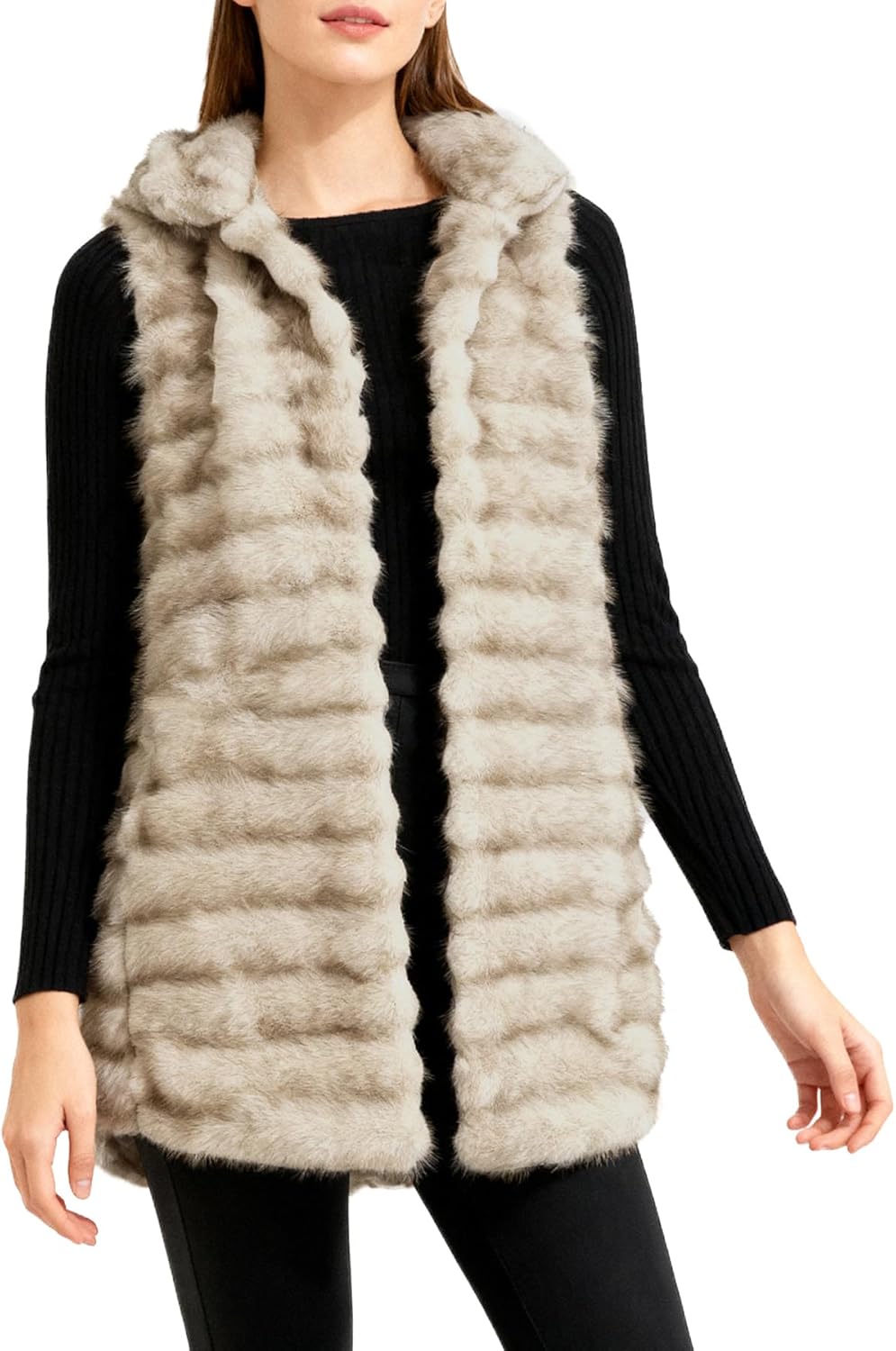 Amazhiyu Womens Faux Fur Open Front Vest Stand Collar Sleeveless Jackets Pockets