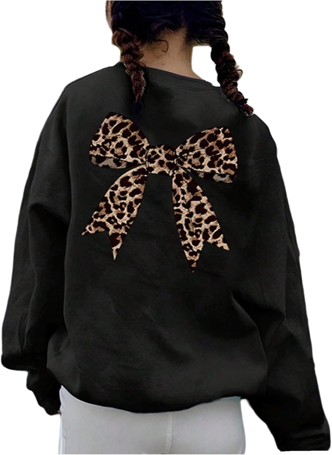 SweatyRocks Girl's Bow Graphic Print Long Sleeve Sweatshirts Casual Crew Neck Pullover Tops