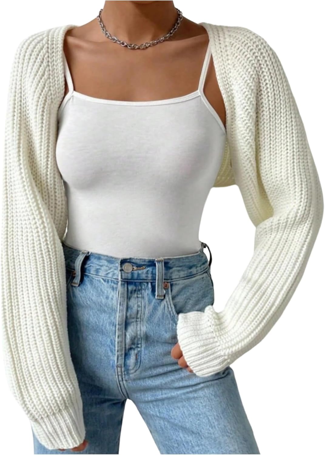 Floerns Women's Long Sleeve Cardigan Sweater Open Front Fall Trendy Bolero Shrug Cropped Tops