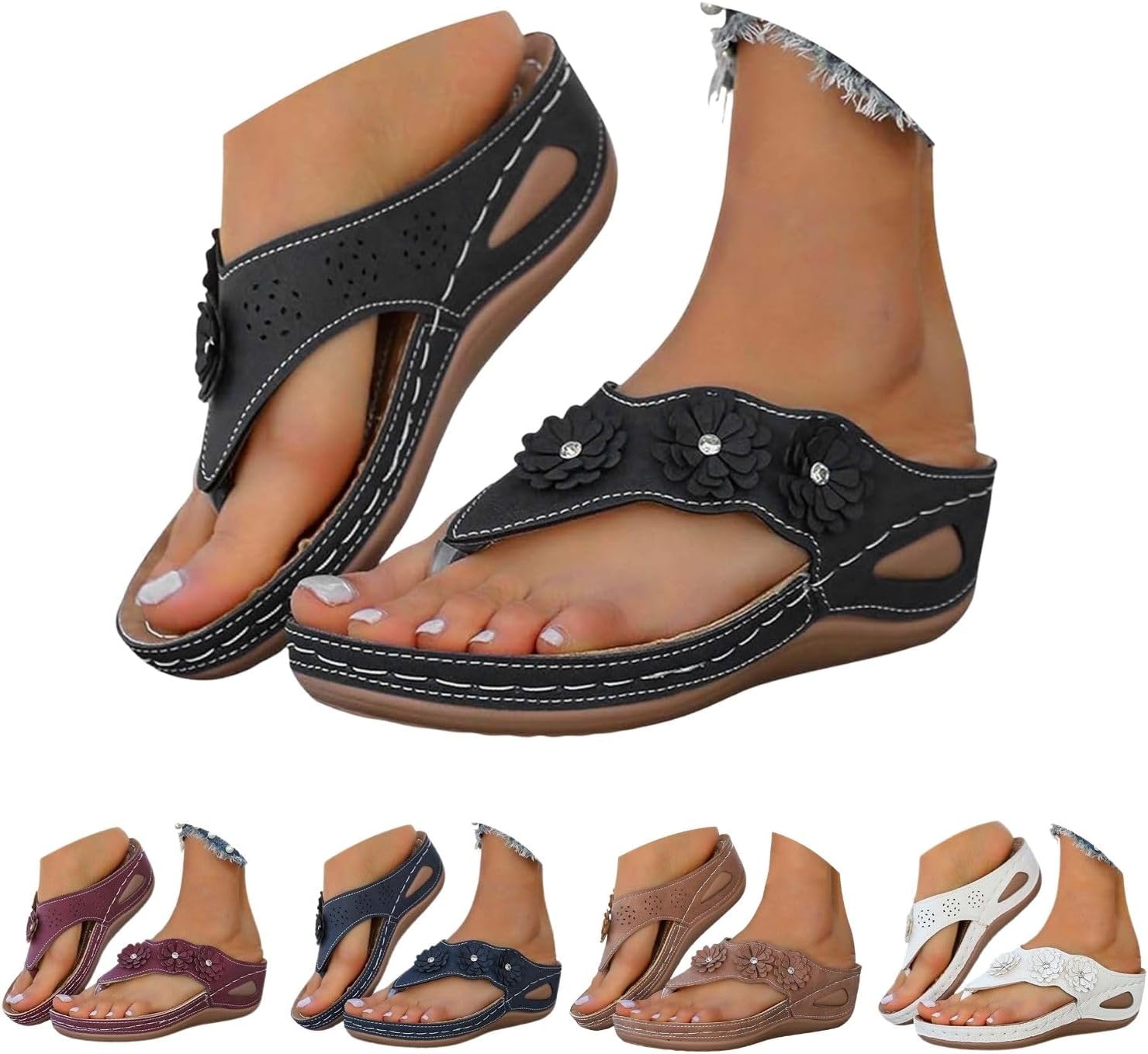 Ortho Sandals for Women Orthopedic Wedge Flower Flip Flops Sandals with Arch Support Summer Comfortable Non-slip Slides Dressy Summer Beach Boho Vacation Shoes