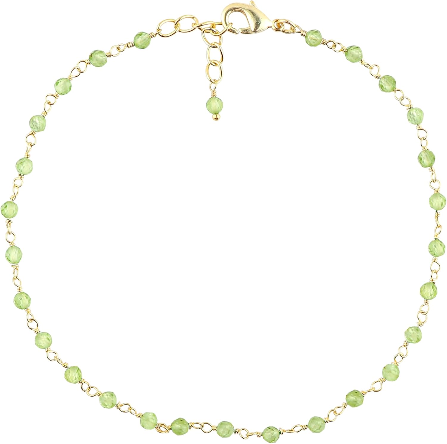 Natural Gemstone Beaded Rosary Chain Cluster Anklets, Handmade Bohemian Jewelry, 14K Gold Plated, Healing Crystals Beads Ankle Bracelet, Christmas Gift for Women