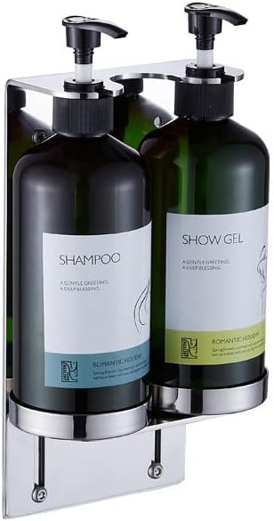 Wall-Mounted 2-Bottle Soap Dispenser Screw-on Lift Adjustable Leak-Proof Press-on Shampoo Conditioner Shower Gel Pump Soap Dispenser for Hotels, Bathrooms and Toilets Stainless Steel Glossy Finish