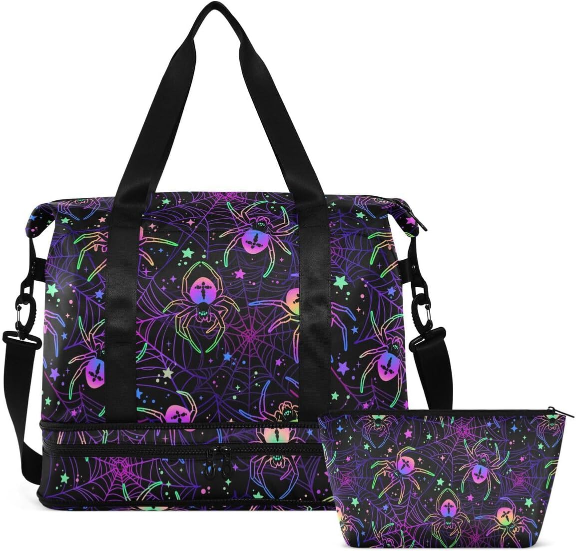 MNSRUU Travel Duffel Tote Bag Multi-colored Spiders Sports Duffel Bag with Wet Pocket Weekender Overnight Bag for Women Men Gym Bag, Carry On Bag Hospital Bag for Labor and Delivery