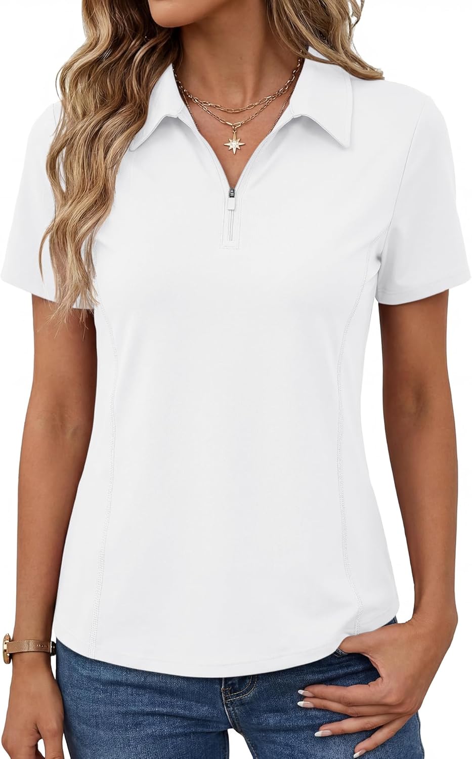 LOMON Women’s Short Sleeve Athletic Polo Shirt High Performance Stretch Quarter Zip Top for Golf Tennis