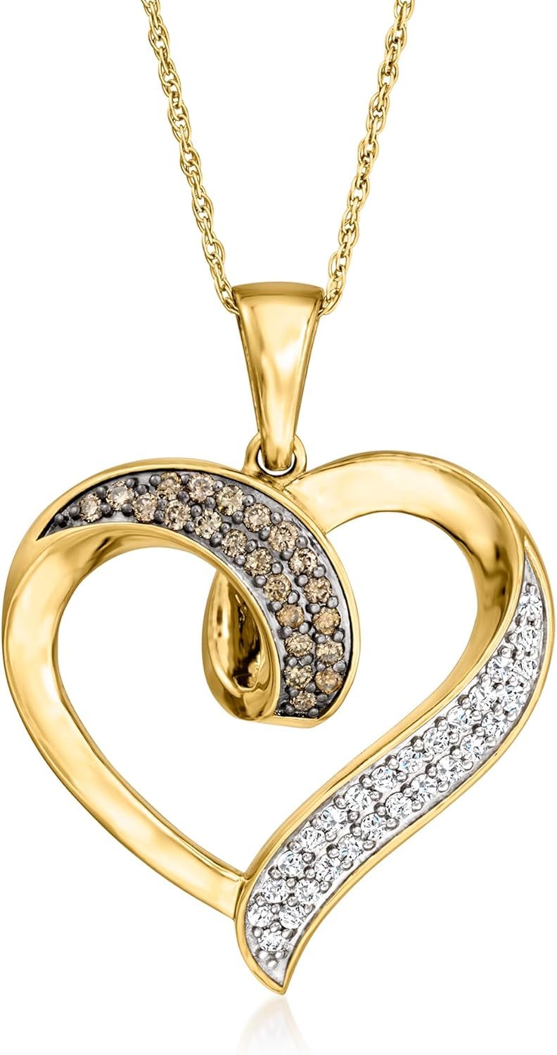 Ross-Simons 0.50 ct. t.w. Brown and White Diamond Heart Pendant Necklace in 18kt Gold Over Sterling. 18 inches