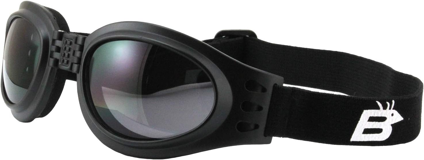Birdz Eyewear Parrot Folding Padded Motorcycle Goggles Black Frame with Smoke Lens for Men & Women