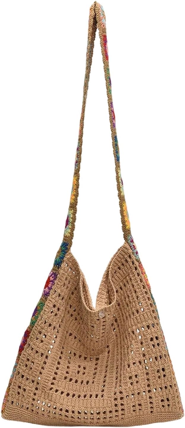 QWINEE Women's Boho Embroidery Crossbody Bag Hollow Out Crochet Knit Shoulder Bag Tote Handbag
