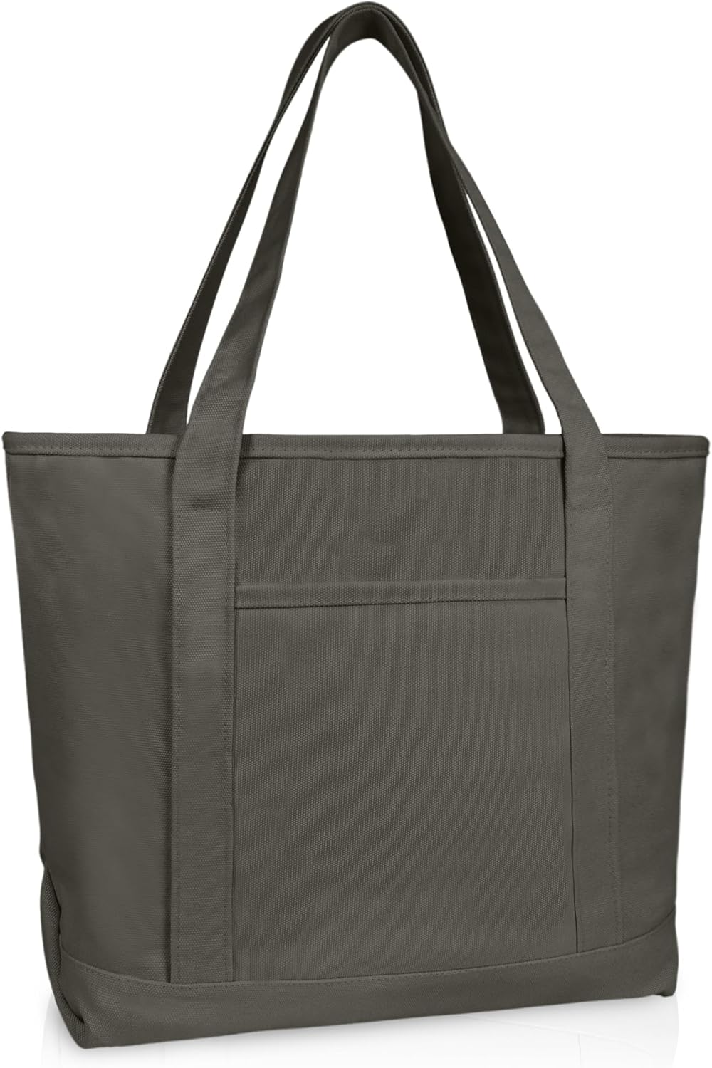 Dalix 20" Solid Color Cotton Canvas Shopping Tote Bag in Asphalt Gray