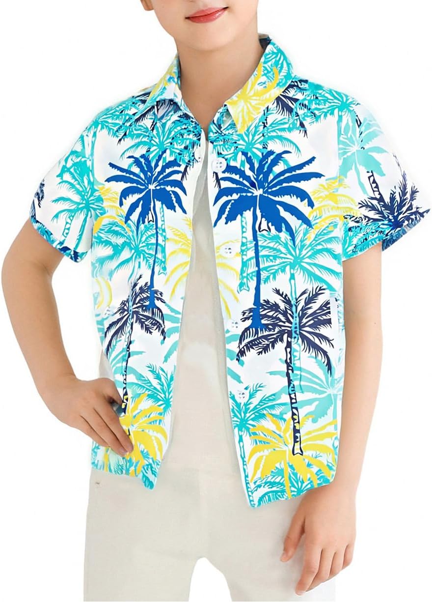 Boys Hawaiian Shirt Short Sleeve Boys Button Down Shirt Beach Casual Summer Print Top T-Shirt for Kids 5-14 Years