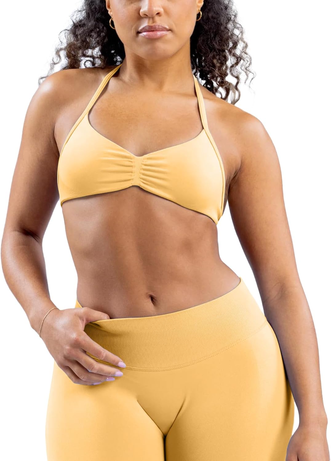 Women's Strappy Halter Sports Bra Backless Gym Bra with Removable Pads