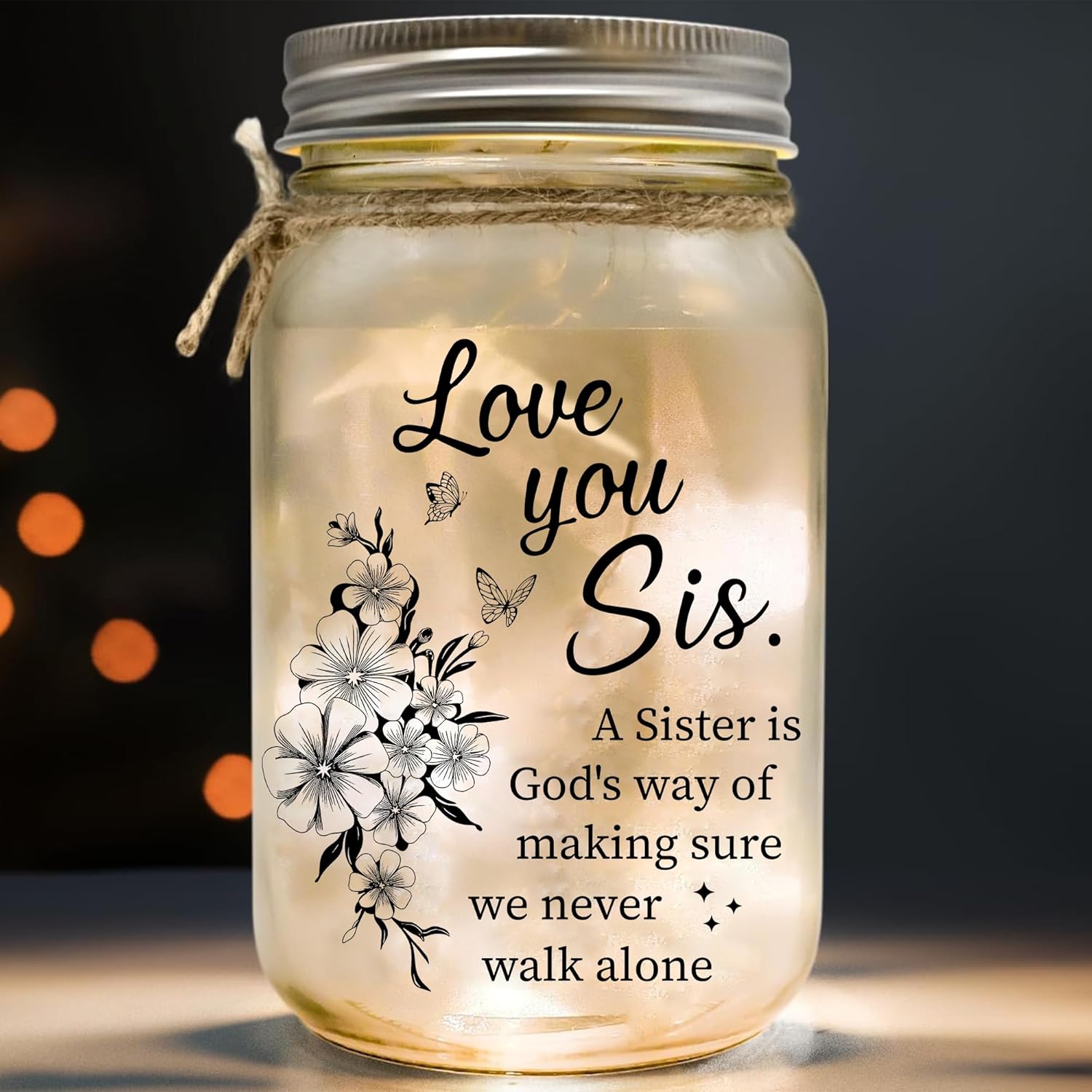 - Package Included - 01 Marson jar x 01 light strings (Battery not included) x 01 special paper to make starlights. Crafted with care and adorned with a touching message, this night light symbolizes a mother’s unconditional love for your sister. Ideal sisters gifts from sister, birthday gifts for sister