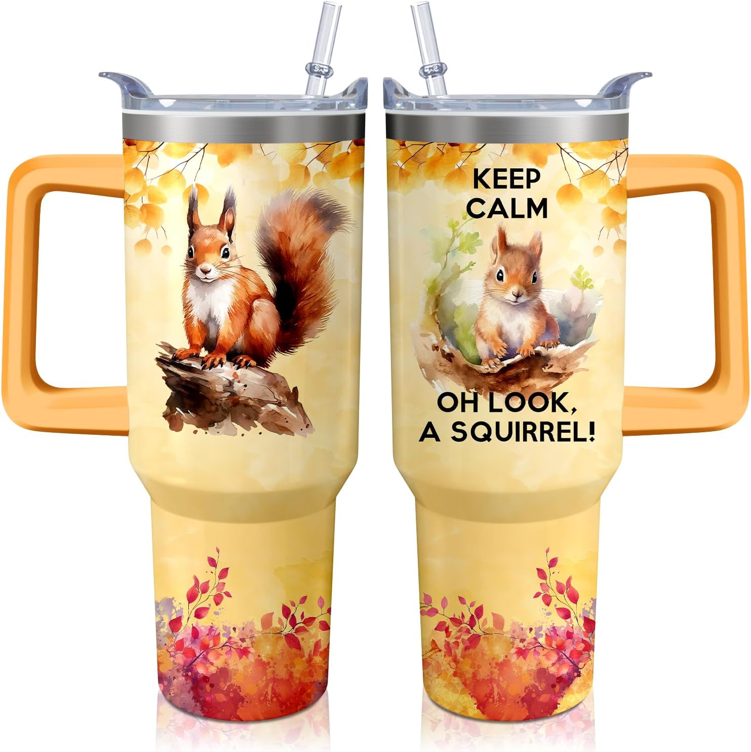 40oz Squirrel Stainless Steel Tumbler with Handle and Straw, Insulated Cup Travel Coffee Mug Water Bottle with Lid and Straw, Animal Lovers Women Gifts