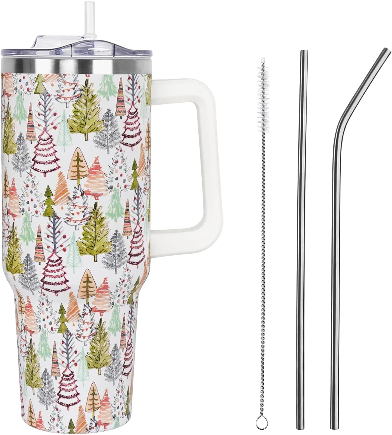 Christmas Trees Tumbler with Handle and Straw Lid 40 oz,Cute Merry Xmas Colorful Gifts for Women Vacuum Insulated Leak Proof Tumbler,Winter Holiday Accessories Stainless Steel Coffee Cup Mug