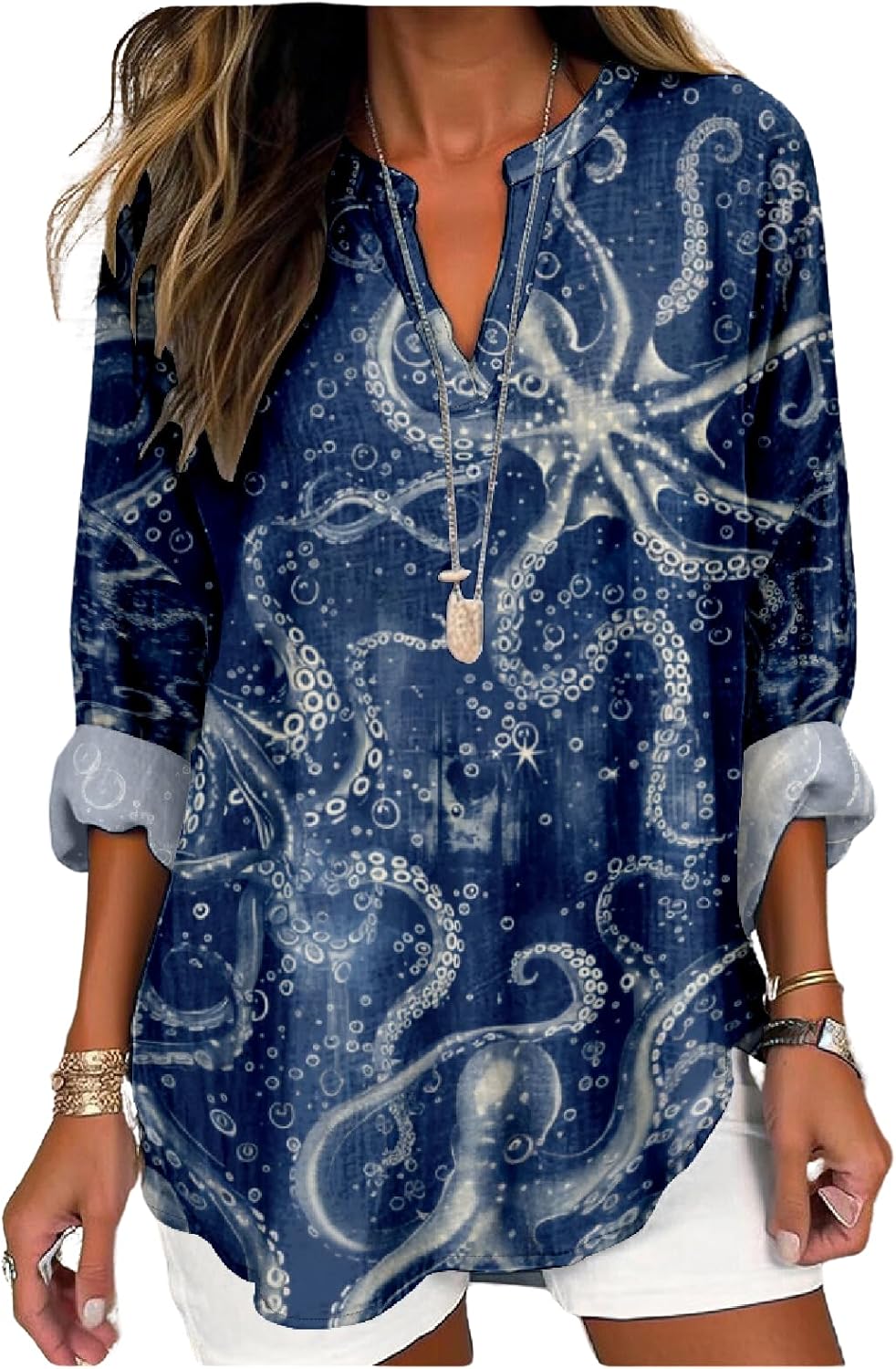 MARSVOVO Japanese Art Style Shirt for Women Long Sleeve Novelty Graphic Tops V Neck Oversize Vintage Causal Pullover