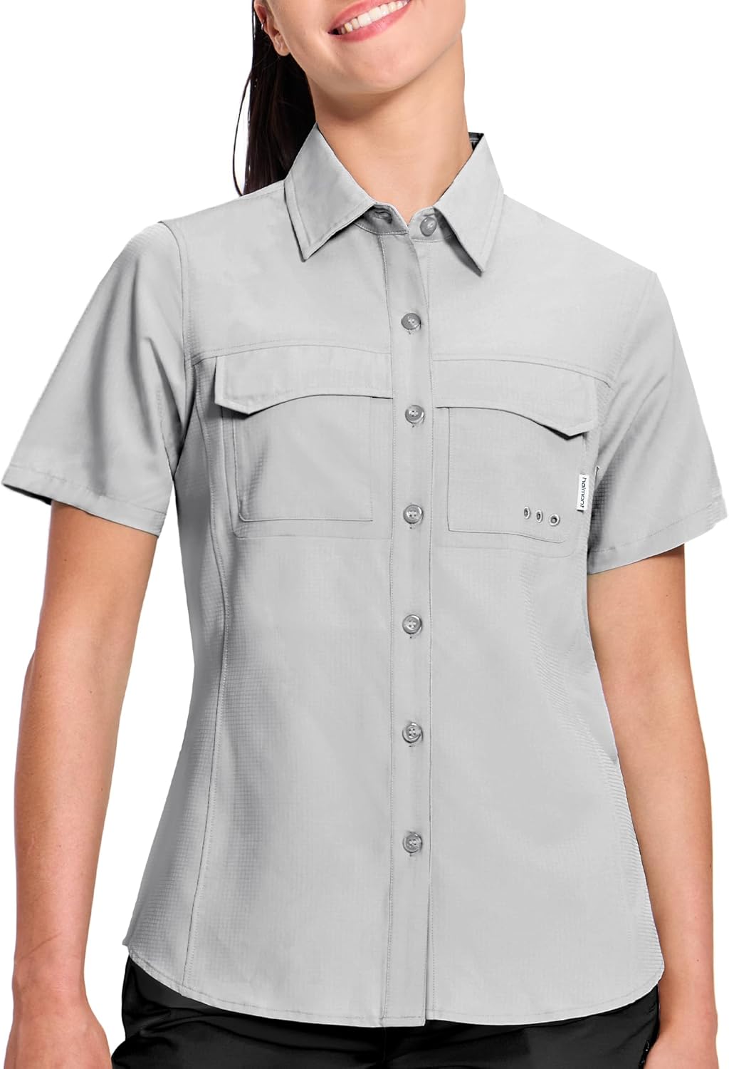 Haimont Women's UPF 50+ Sun Protection Button Down Fishing Hiking Travel Shirts Short Sleeve Quick Dry Shirt with Pockets