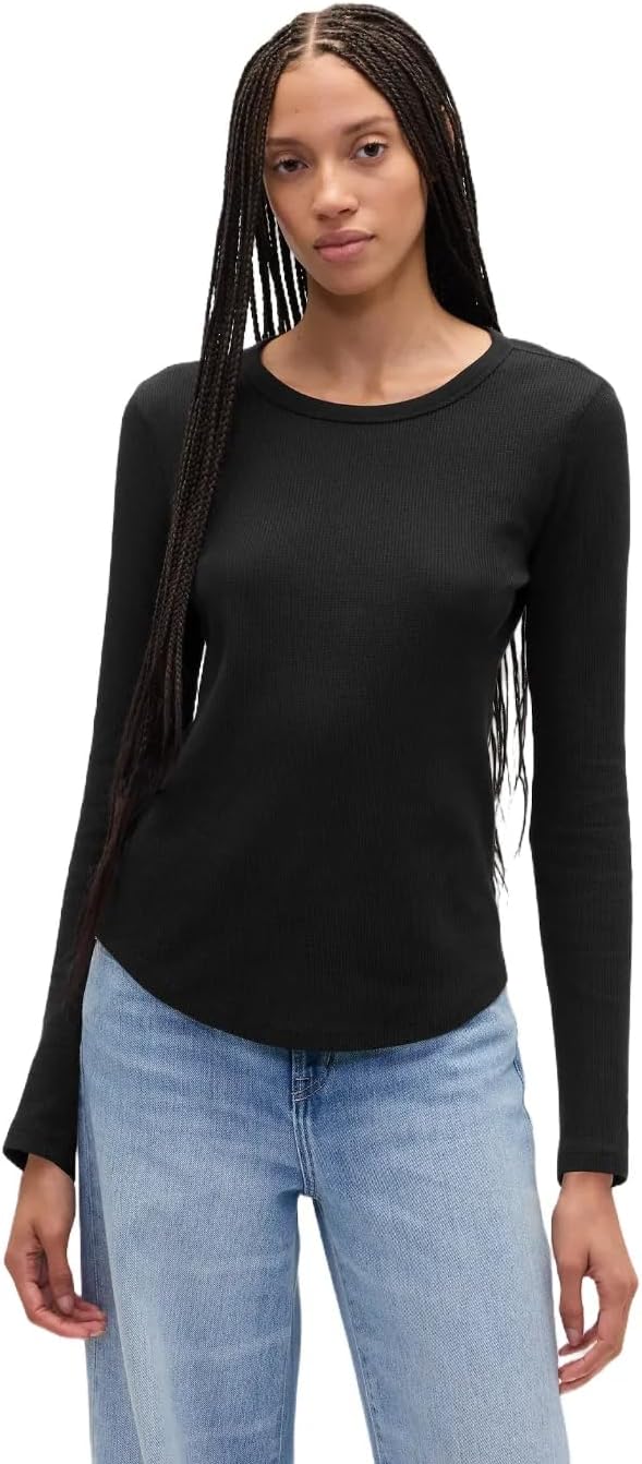 GAP Womens Long Sleeve Waffle Knit T-Shirt