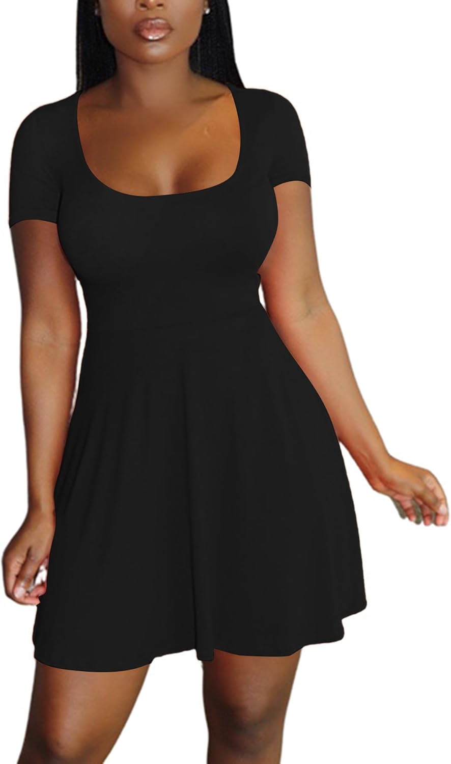 LYANER Women's Scoop Neck Short Sleeve Ruffle Hem A Line Flare Mini Basic Dress