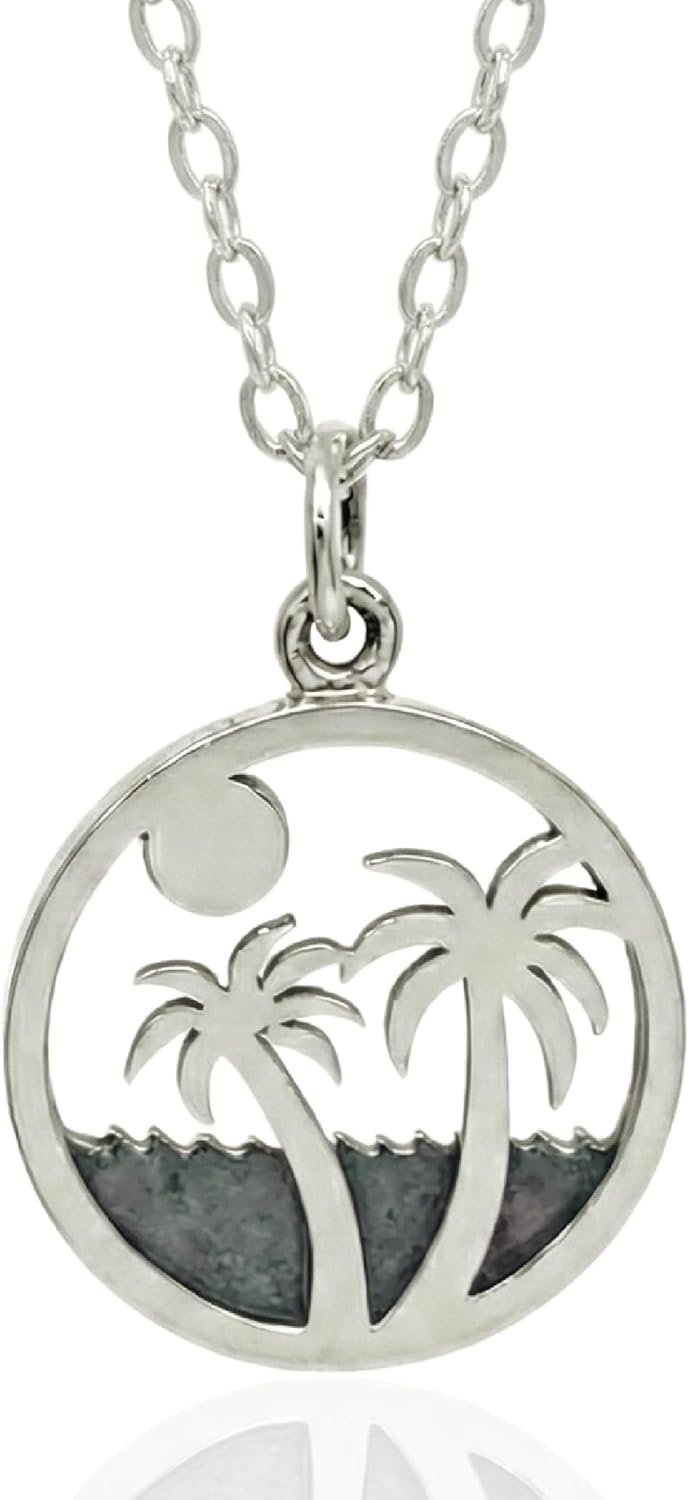 EnCharmed Palm Trees On Island Charm Necklace for Women, Sterling Silver Dainty Handmade Necklace, Tropical Vacation Pendant, Everyday Minimal Layering Jewelry, 18"