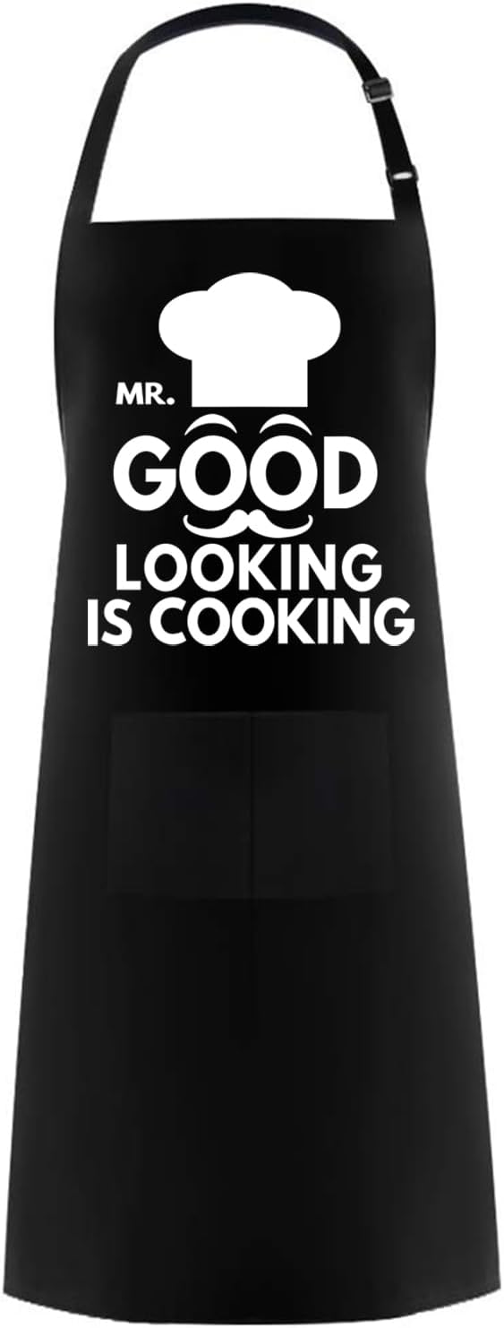 Hyzrz Funny Aprons for Men, Women -Mr. Good Looking is Cooking- Gifts for Fathers Day, Mothers Day, Birthday - Cooking Grilling BBQ Chef Apron (Black)