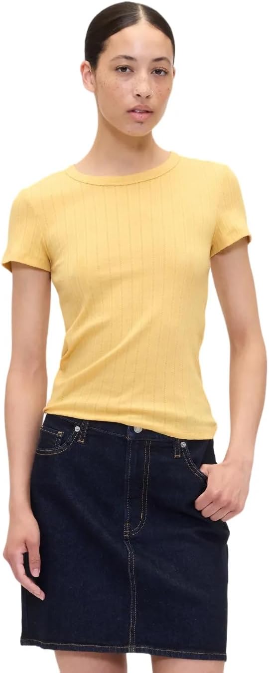 Gap Womens Short Sleeve Pointelle Ribbed Knit Top