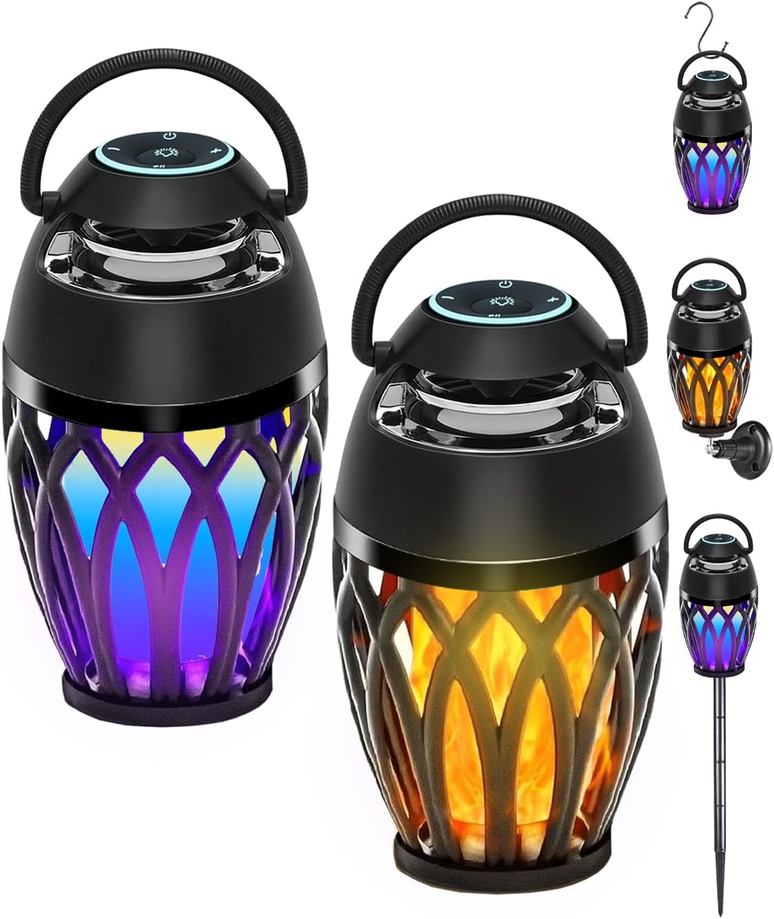 Upgraded Outdoor Bluetooth Speakers, Portable Speaker Waterproof IPX6 with LED RGB Flame Lights, Gadget Gifts for Dad, Hd Stereo Sound, BT 5.3 Portable Wireless Speaker For patio Deals Party(2 Pack)