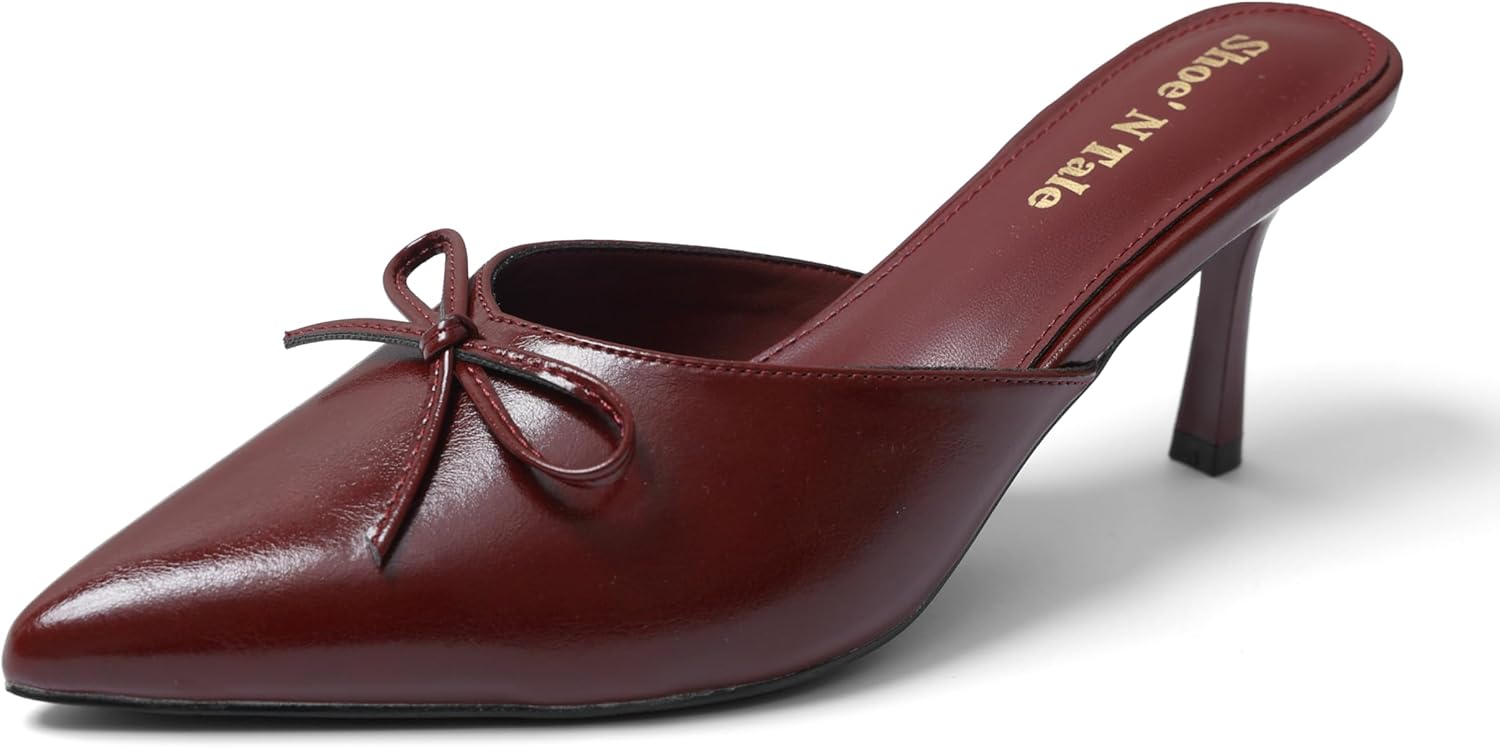 Shoe'N Tale Pumps for Women Kitten Heels Bow Heeled Sandals Closed Pointed Toe Slip-ons Dressy Stiletto Mules
