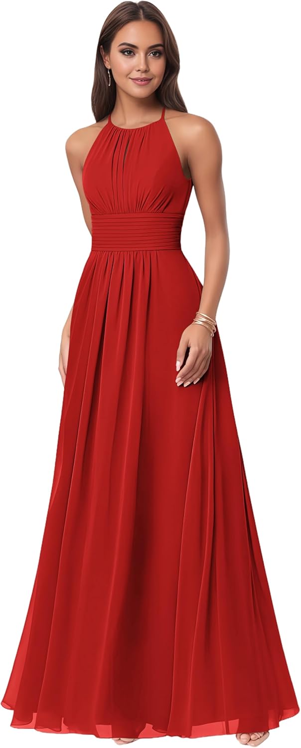 Halter Chiffon Bridesmaid Dresses for Women Sleeveless A Line Long Formal Evening Gowns