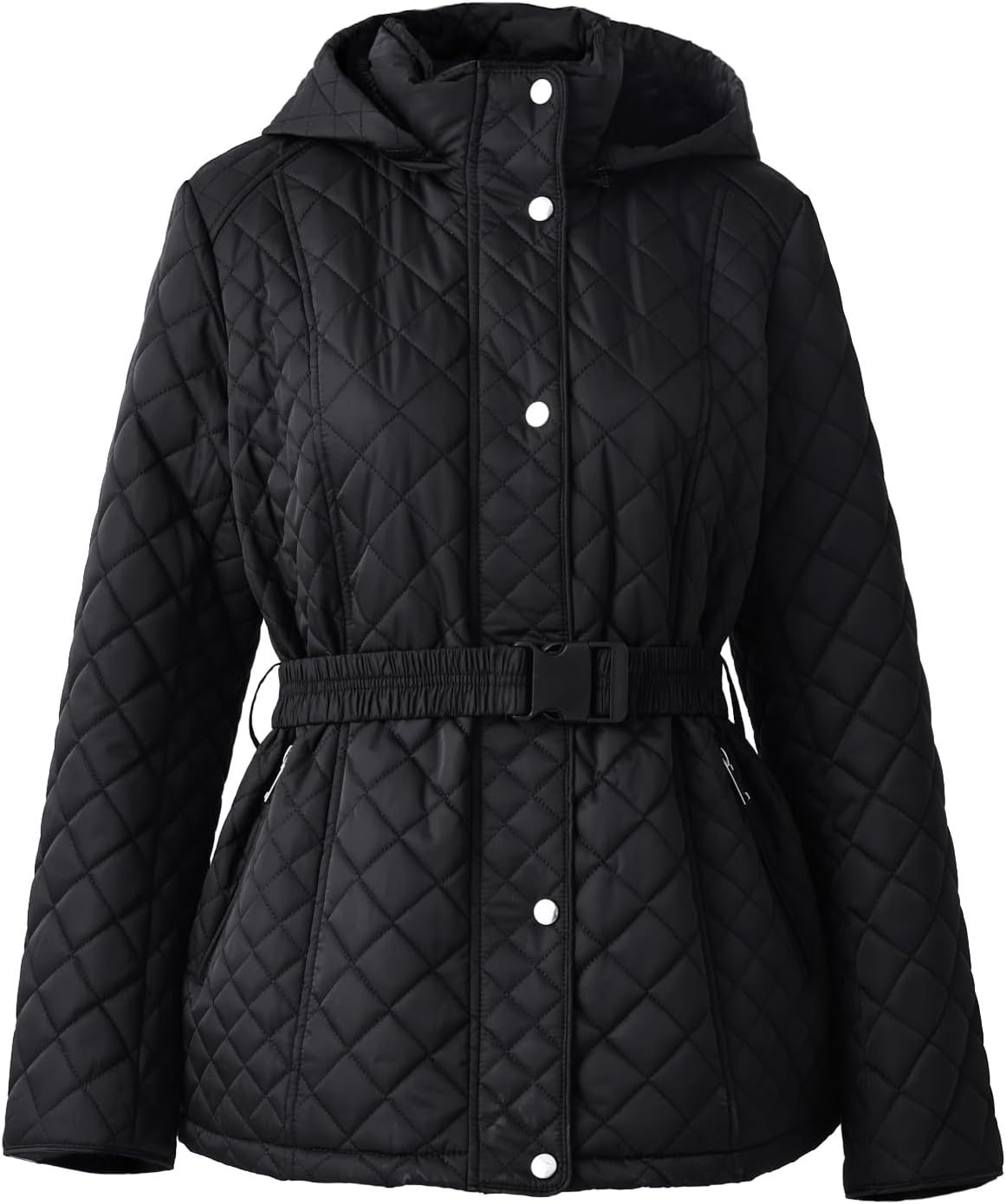 Women's Lightweight Quilted Puffer Jacket Padded Zip Warm Coat Detachable Hooded for Spring and Winter