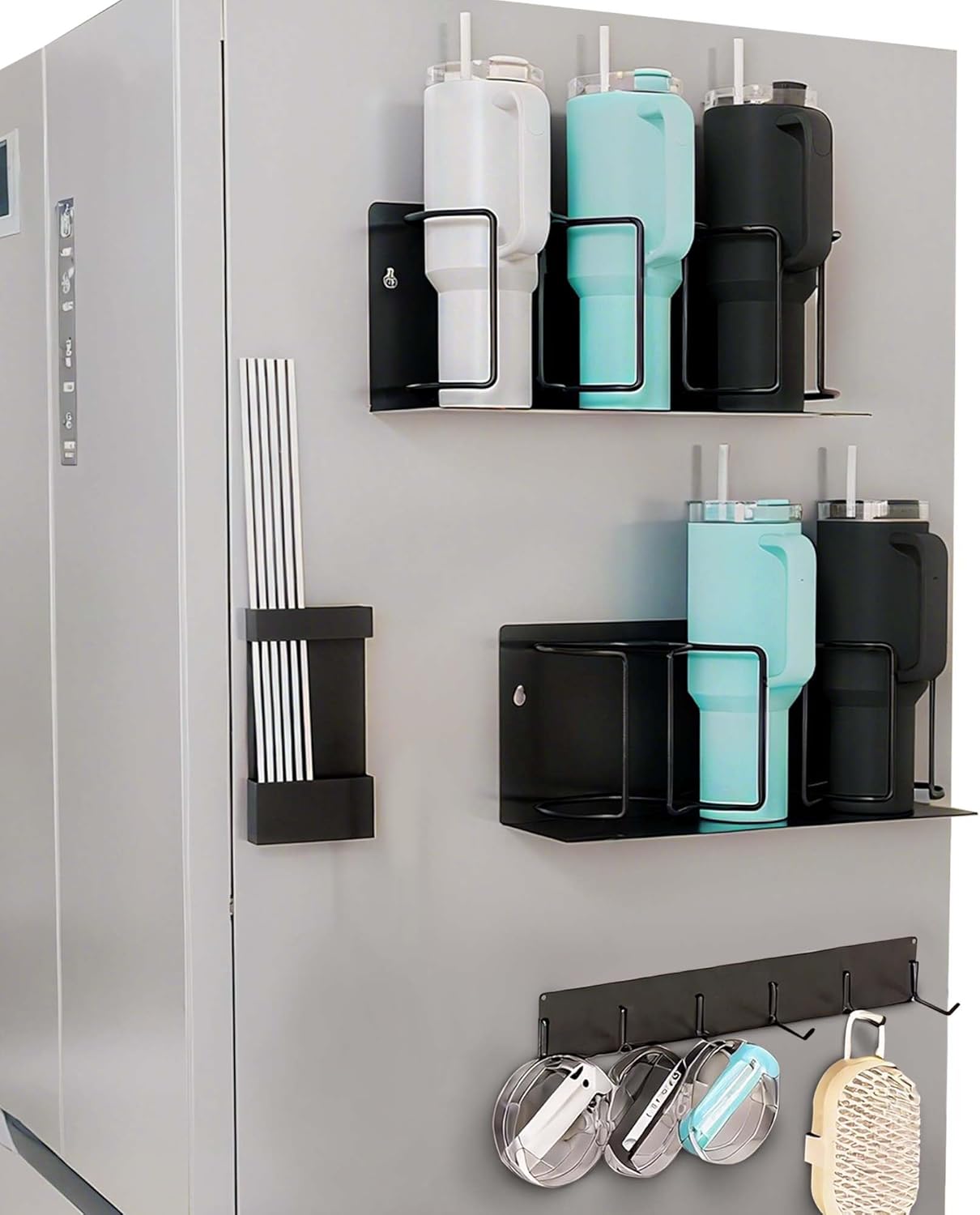 - Durable & Rust-Resistant Magnetic Cup Holder: Crafted with high-quality, rustproof materials, this Stanley cup holder works both as a cabinet organizer and water bottle organizer for fridge mounting.