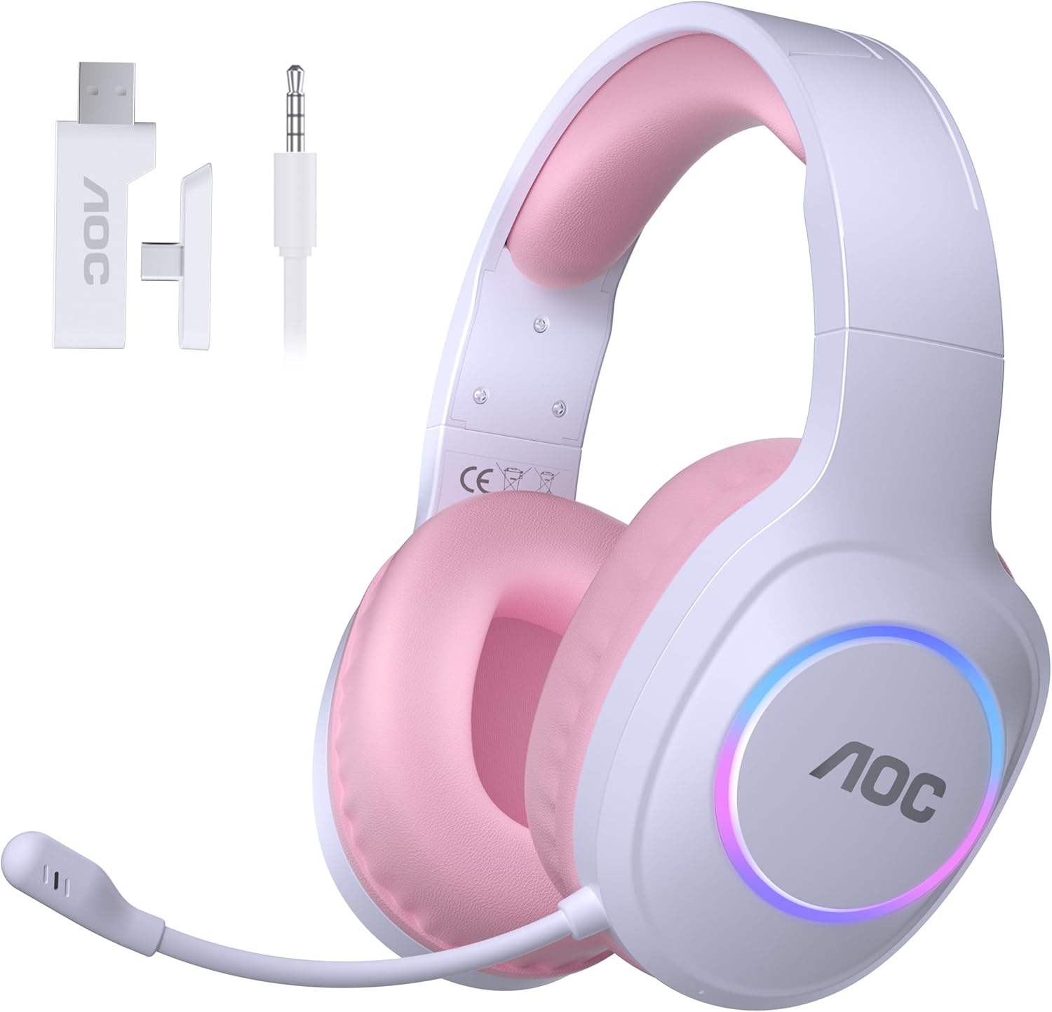 AOC Wireless Gaming Headphones with USB-C for PS5/4, Nintendo Switch, PC, Bluetooth 5.4 & 2.4GHz Gaming Headset with Noise Canceling Mic, RGB, 20ms Latency, 45H, 7.1 Virtual Surround- Pink
