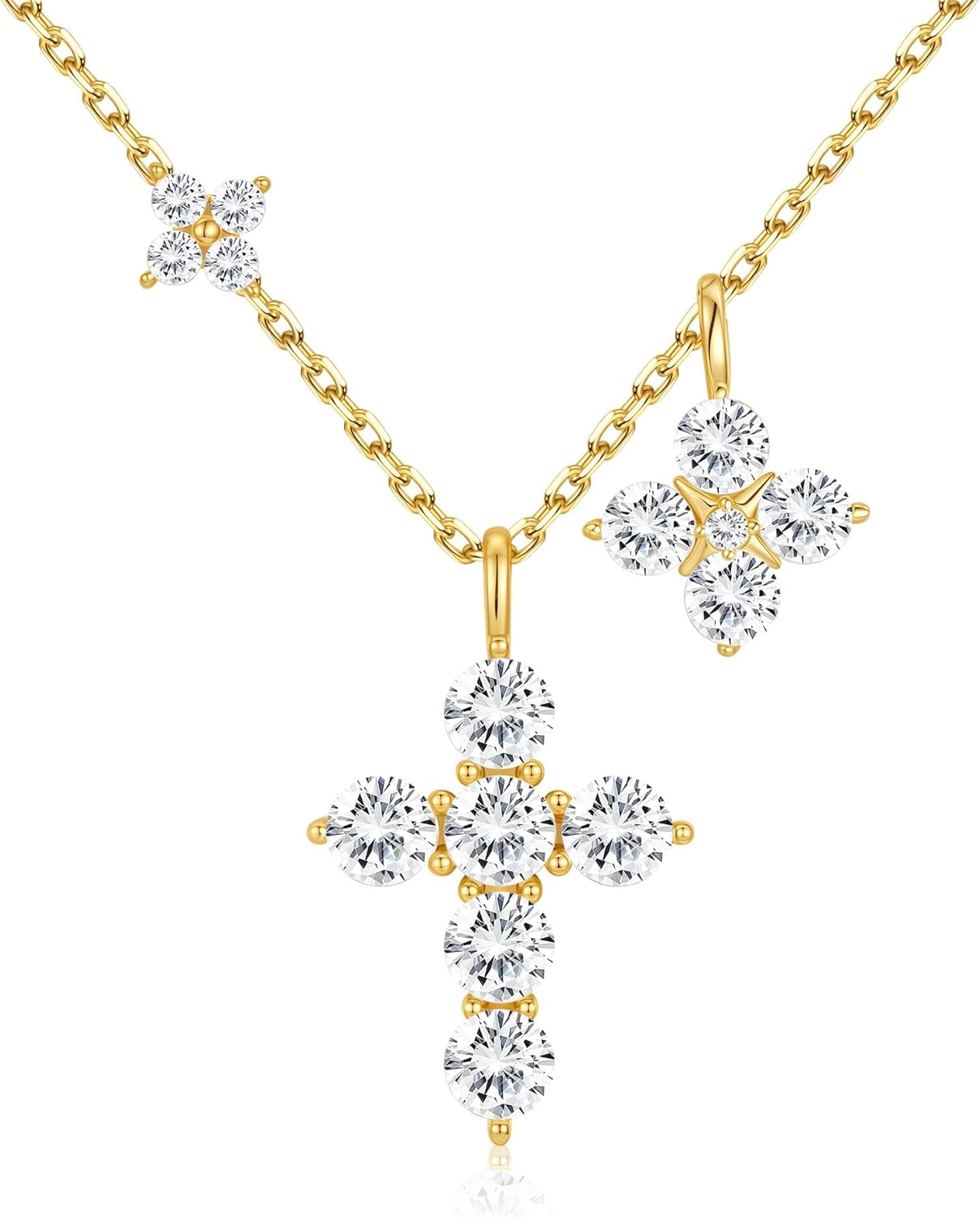 MOOSEA Moissanite Clover & Cross Necklace for Women, 1.92-2.52 Carat Lab Created Moissanite Necklace, 925 Sterling Silver Cross Necklace, Christian Gifts for Women, Faith Pendant Christian Gifts