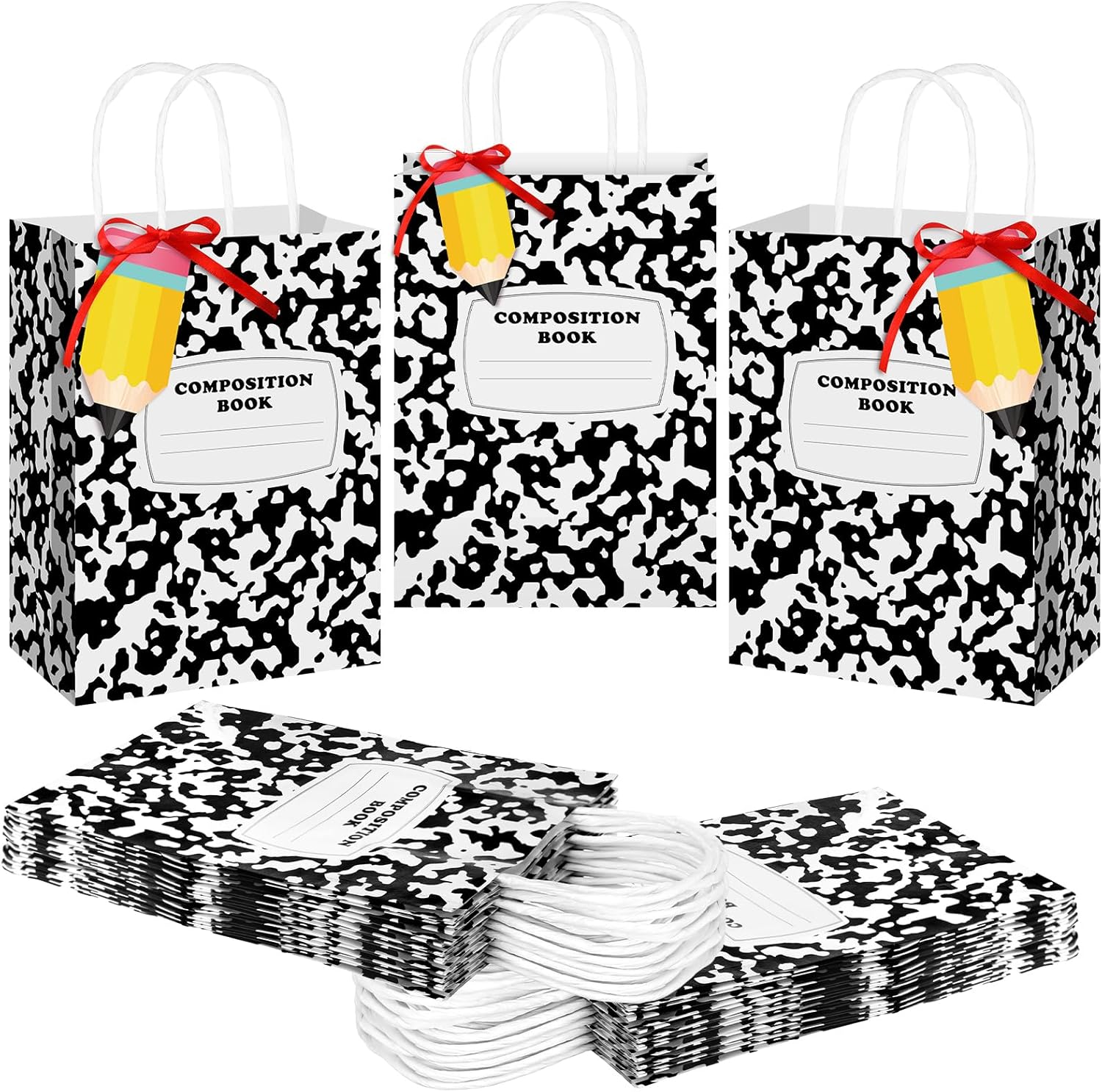 - Eye-catching Design and Color: dressed up in black and yellow, these first day of school gift bags bear an eye-catching book theme; The bright red ribbons and pencil labels simply amp up their charm; Make your teacher's presents stand out from the rest with this visually appealing presentation