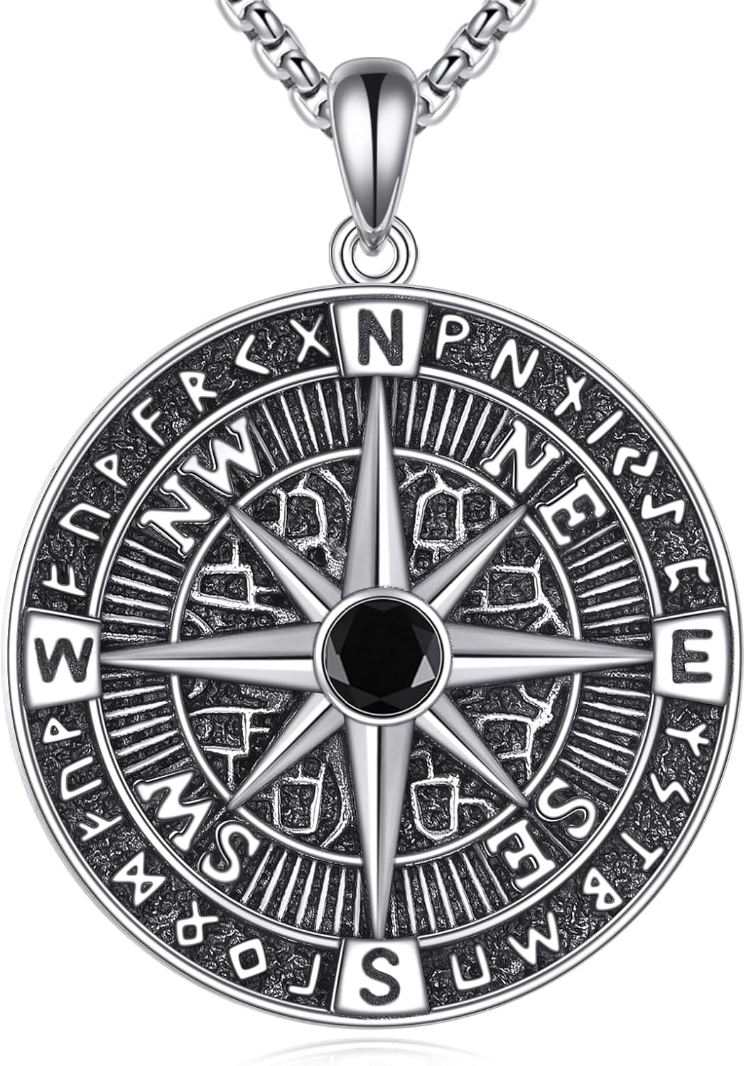 Mens Compass Jewelry - 925 Sterling Silver Compass Pendant Necklace Graduation Inspirational Gifts Jewelry Gifts for Women Men 18-22 Inches Stainless Steel Chain