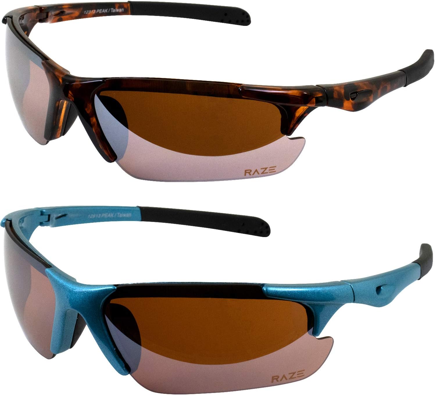 2 Pairs of Raze Eyewear Peak Frameless Sunglasses Tortoise Gloss & Metallic Turquoise with HD Amber Lenses