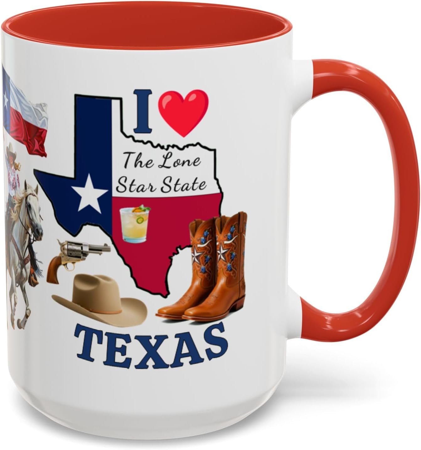 - I Love Texas 15 oz Coffee Mug - Lone Star State Mug - Gift - Christmas - Birthday 15 oz Ceramic Mug
