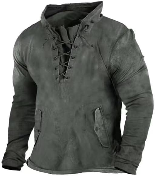 ZOCANIA Retro Tactical Long Sleeve Hoodies Outdoor Sports Drawstring Pullover Distressed Lace Up Hooded Shirts
