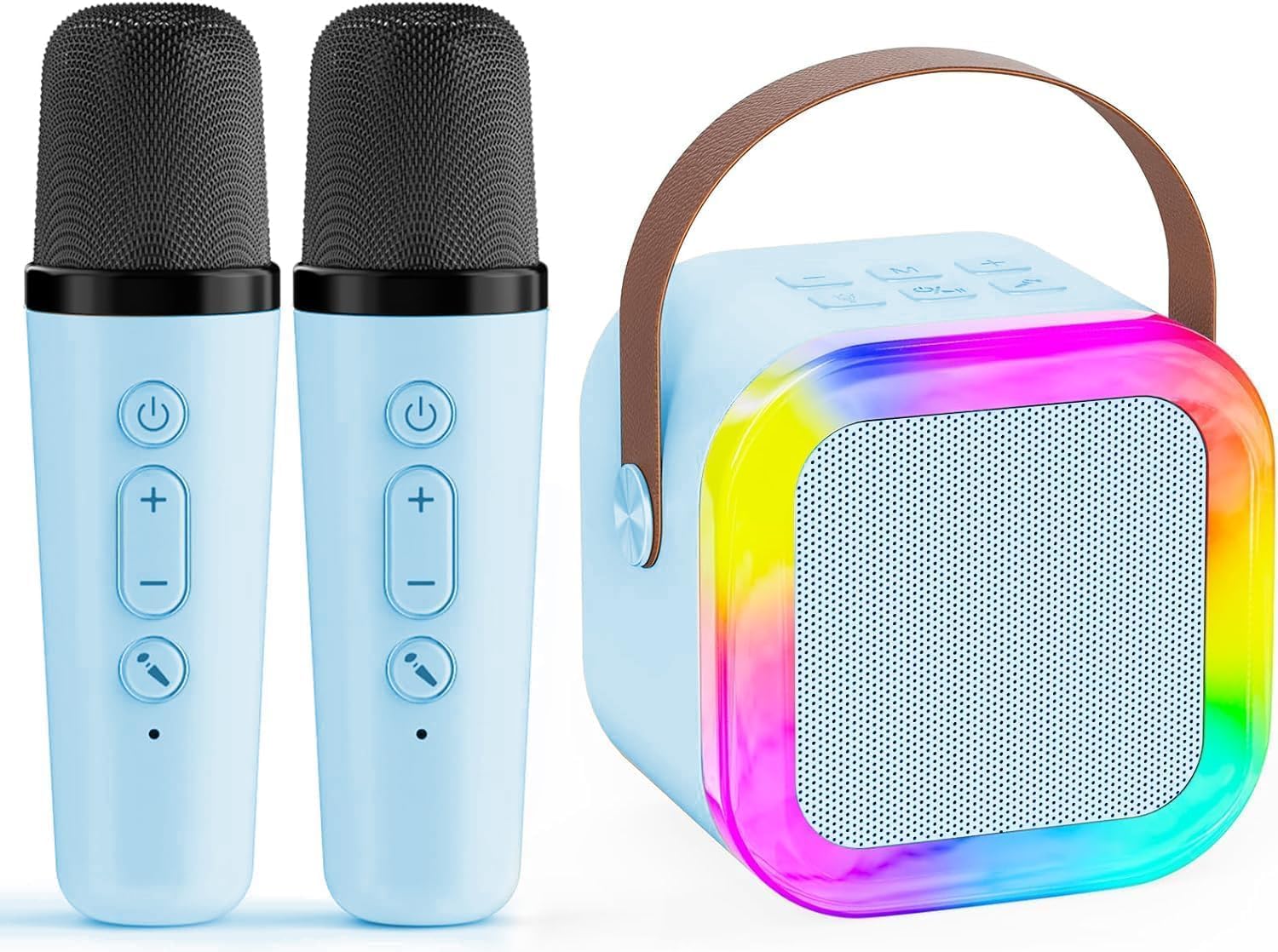 Karaoke Machine for Kids,2025New Mini Portable Karaoke Toys, Karaoke Speaker with 2 Wireless Microphone & Light for Home Party for Adults (Blue-2Mic)