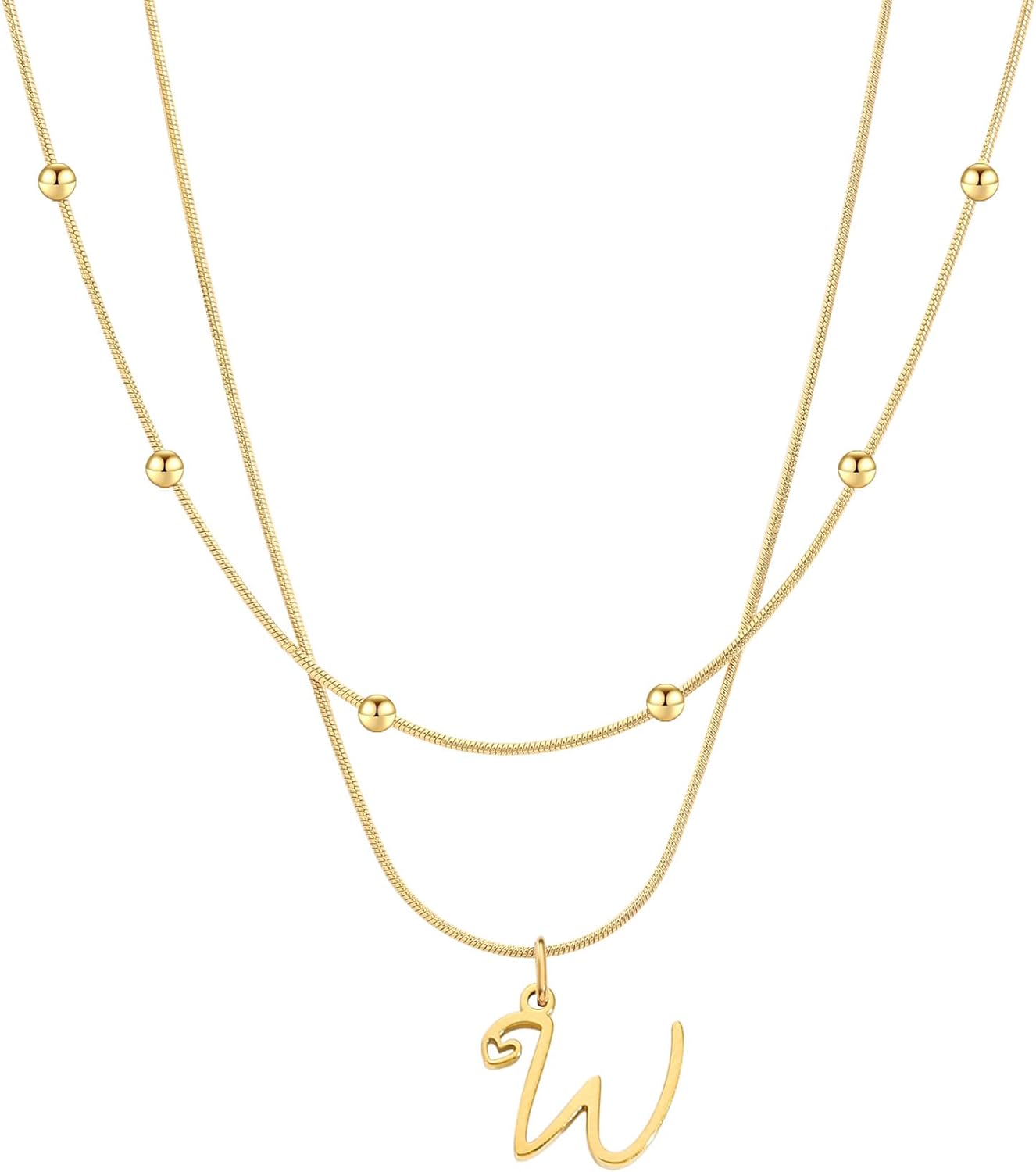 Maxforever Dainty 14K Gold/Silver Layered Chain Initial Necklaces for Women, Cute Snake Chain & Bead Snake Chain Choker,Delicate & Minimalist Jewelry Gift for Her