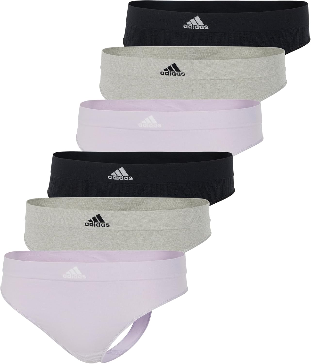 adidas Women's Seamless Thong Underwear Multipack, Silver Dawn/Black Ribbed/Heather Grey, Large