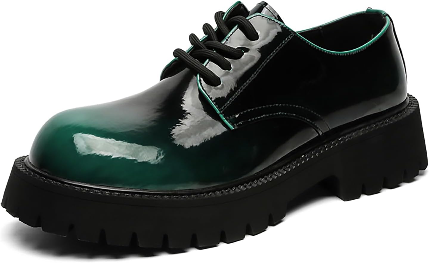 ZEDGMGEO Business Platform Oxfords for Men's Gradient Green Patent Leather Dress Shoes Lug Sole Non-Slip Comfortable Wide Toe Lace-up Work Shoes for Formal Office Casual