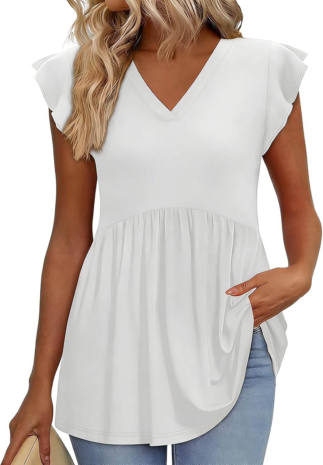 Boho Tops for Women Summer Ruffle Sleeve Shirts Fashion Casual Blouse for Women