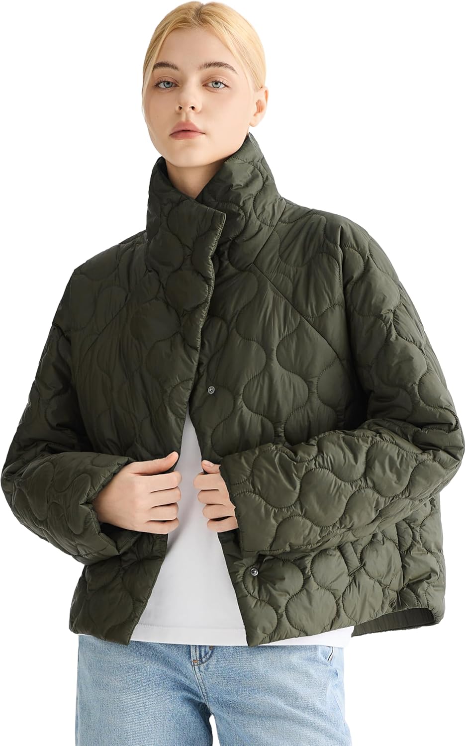 Orolay Women's Oversized Quilted Jacket Cropped Puffer Coat Lightweight Casual Short Outerwear with Pockets