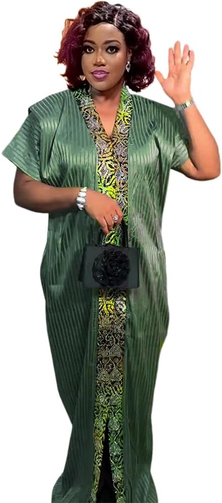 HD African Print Bubu Dress for Woman Rhinestone Pattern Rich Aunty Casual Maxi Gown