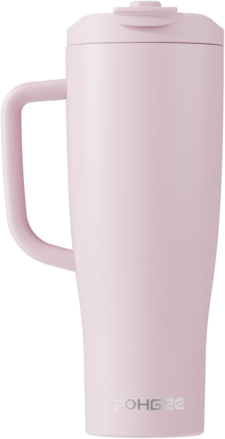 FOHGEE40oz Tumbler with Handle and Magnetic Straw Lid, Double-Wall Vacuum Insulated Stainless Steel Cup, Leak-Proof & Sweat-Proof with Non-Slip Silicone Base, for Travel, Gym, Office-light pink