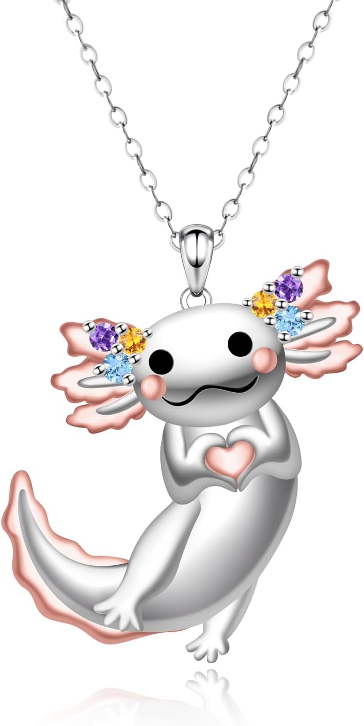 Cute Axolotl Necklace for Women - 925 Sterling Silver Axolotl Pendant Necklace Cute Animal Necklace CZ Hypoallergenic Jewelry Gifts