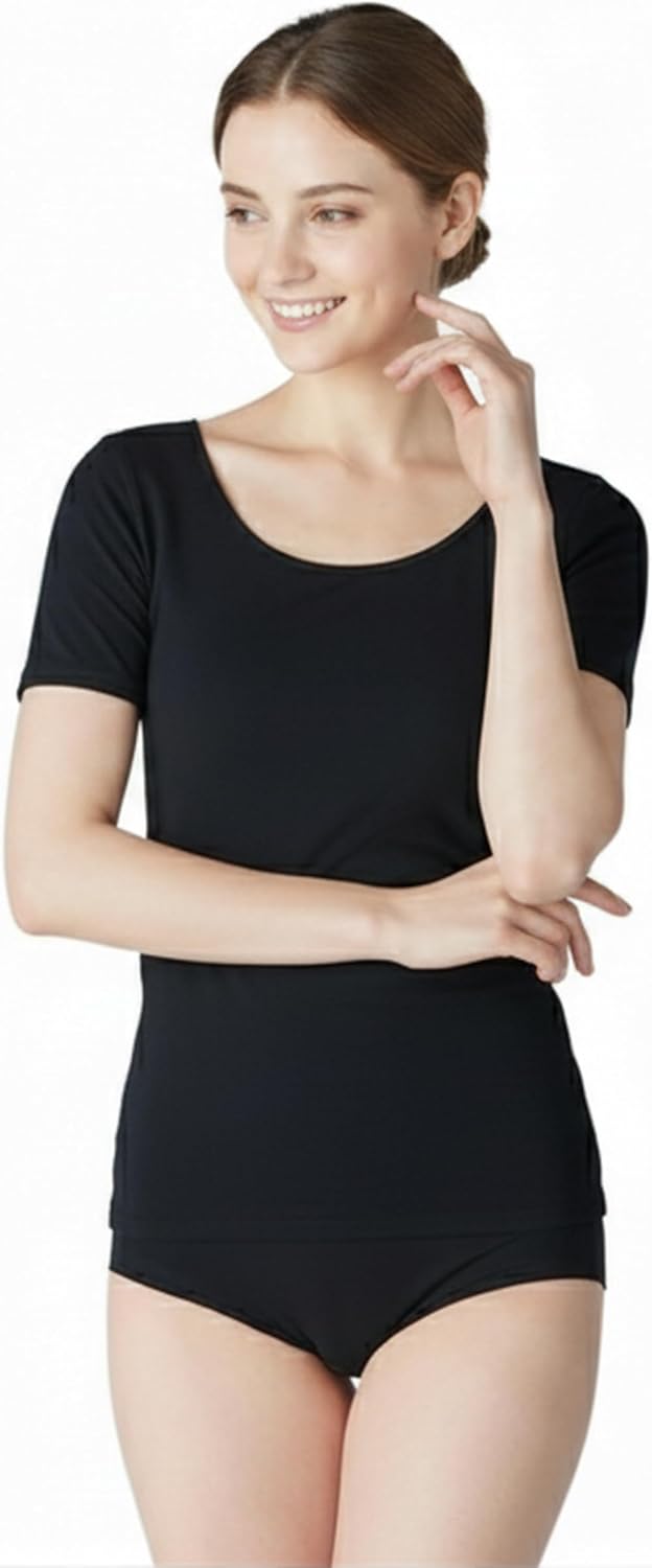 Women’s Odor-Eliminating Undershirt with Japanese Ceramic-Ion Tech, Underarm Sweat Pads, Scoop Neck Cotton,DEOEST