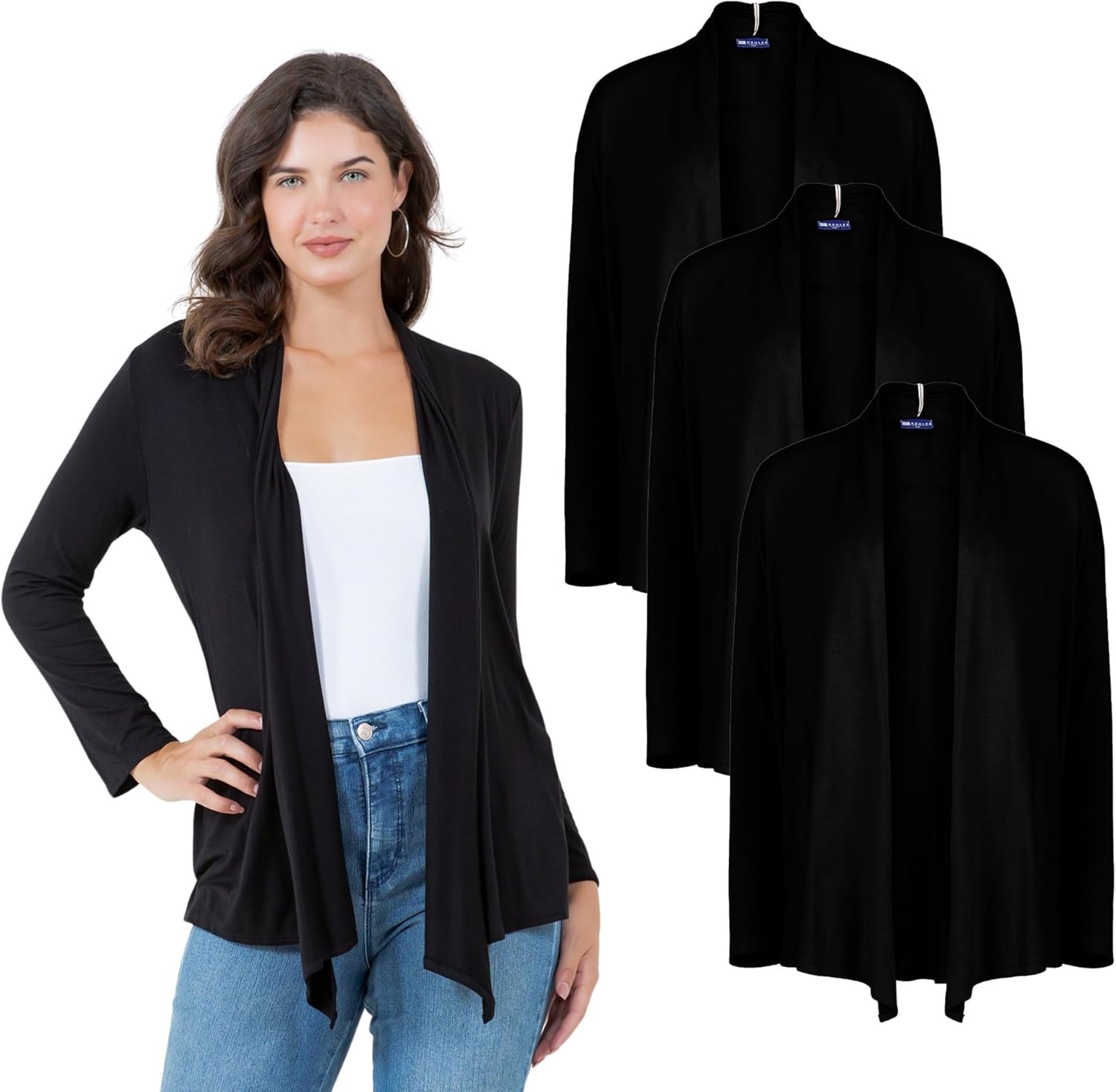 Azules 3-Pack Women's Long Sleeve Open Front Cardigan - Lightweight Rayon Sweater, Soft Flowy Layer for Casual