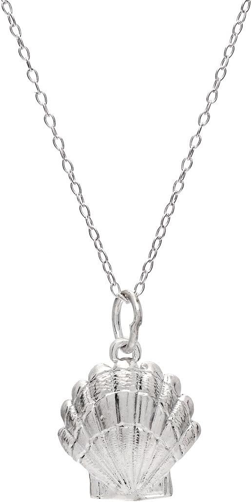 Sterling Silver Scallop Seashell Pendant Necklace, 18"